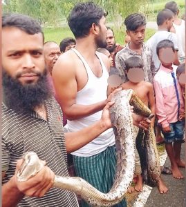 উদ্ধার হওয়া অজগর । চিত্রঃ সংগৃহীত